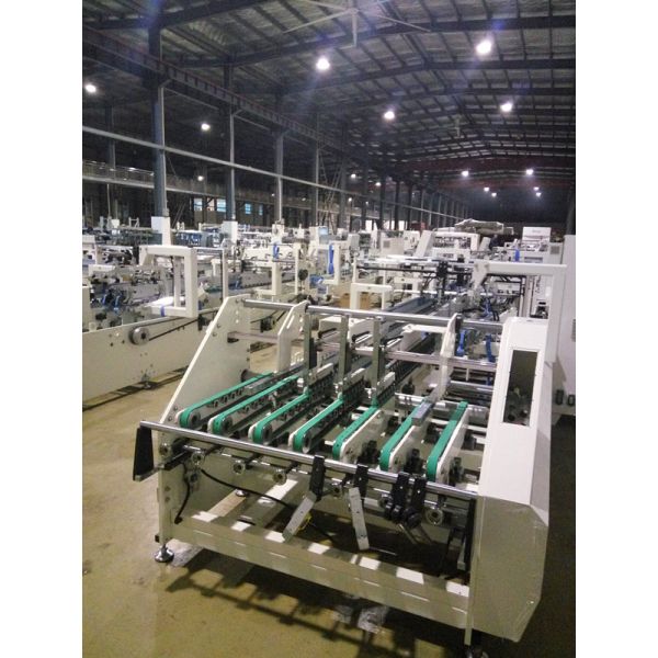 5) Boxes are delivered from the gluing section to the window patching section by suction.